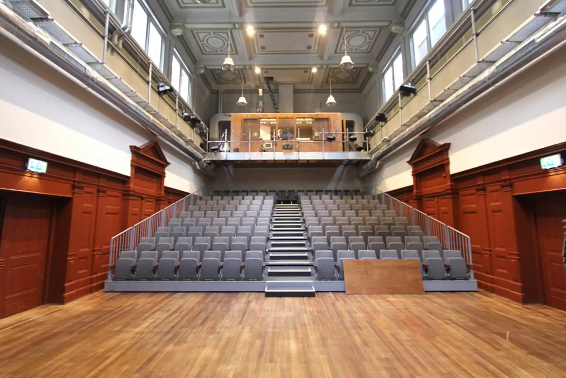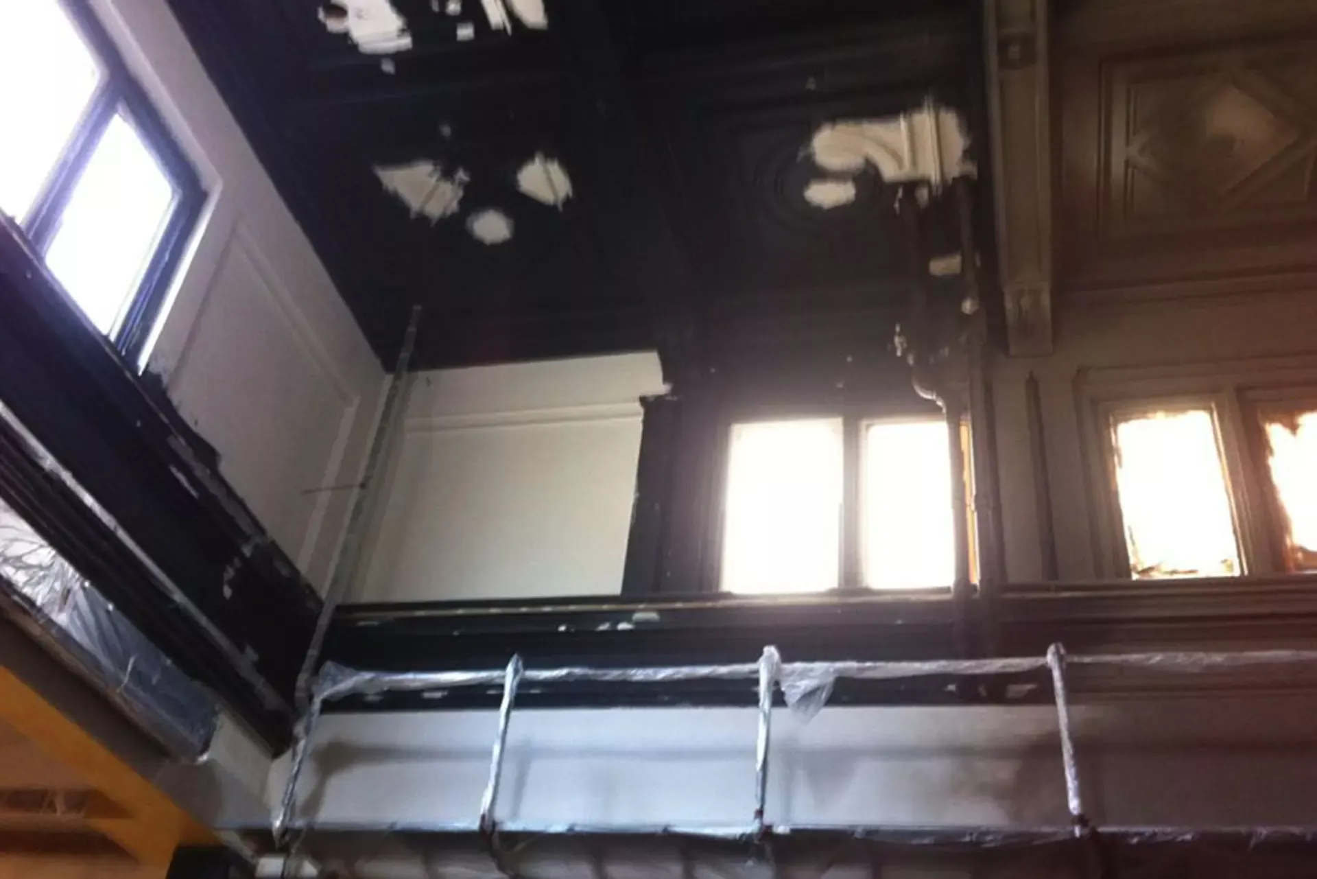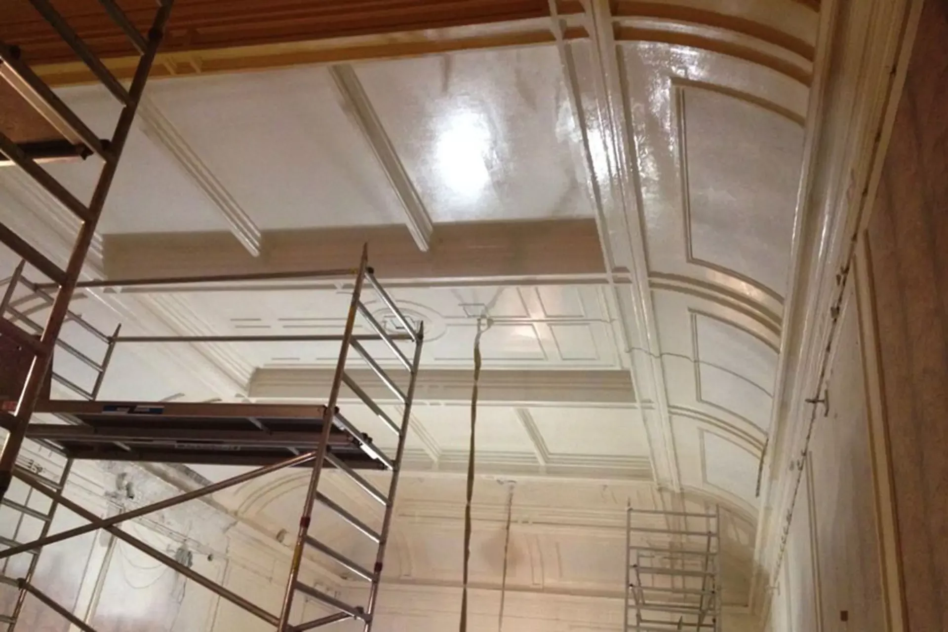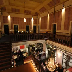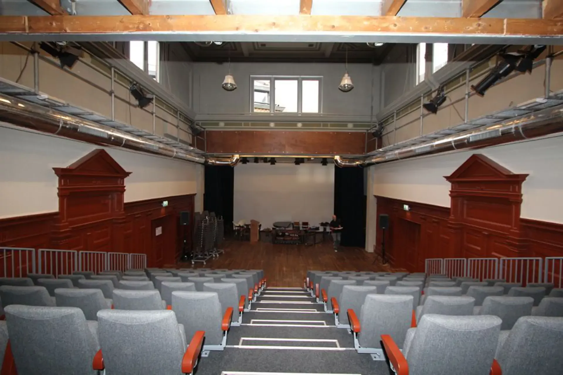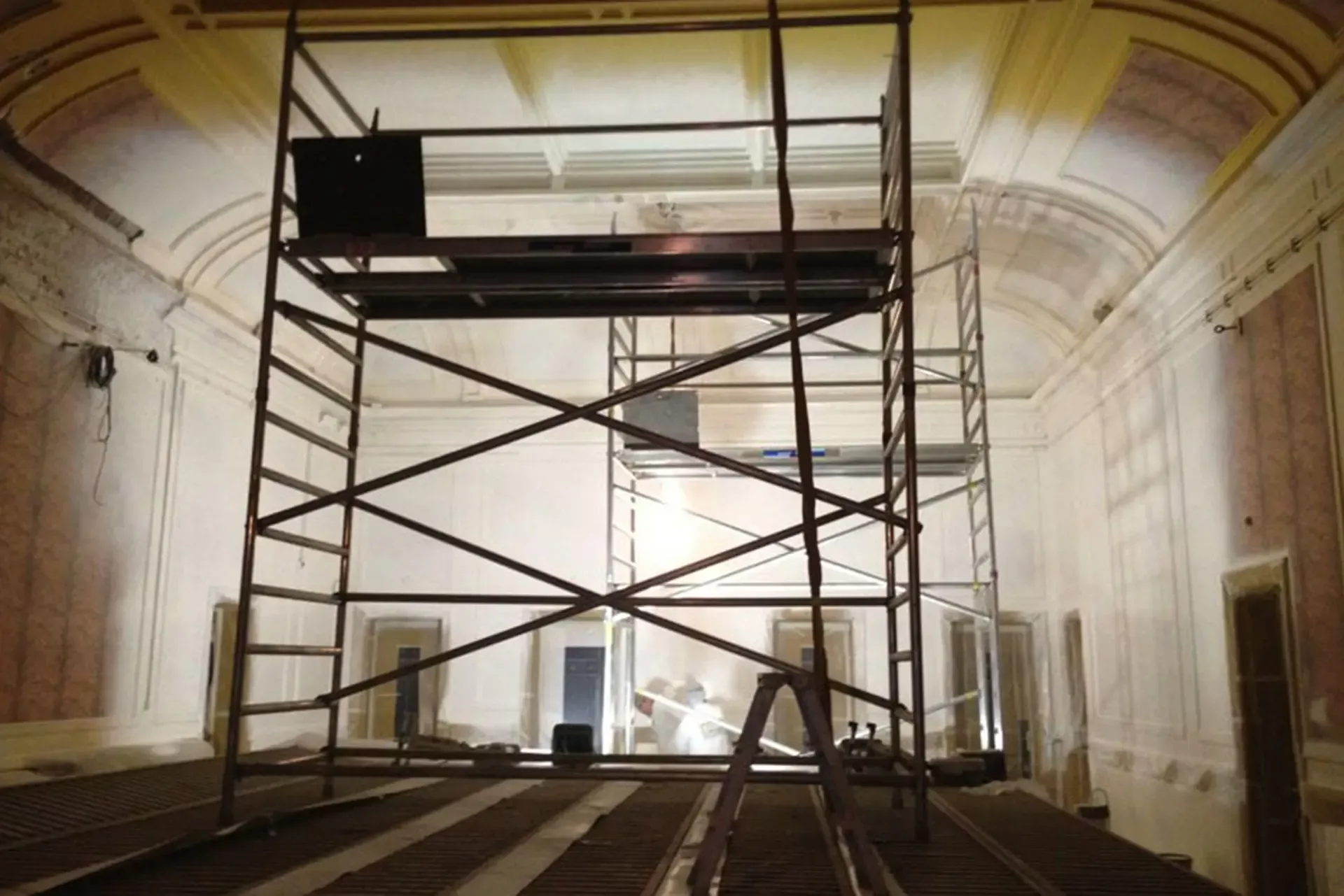 De Balie, gelegen aan het Leidseplein, is een icoon in Amsterdam. Recent hebben wij de renovatie voltooid van de Grote Zaal, Kleine Zaal, Bioscoop en het restaurant met foyer. Ondanks de strakke planning van maximaal één week per zaal, waarbij De Balie open bleef voor het publiek, hebben wij alle werkzaamheden nauwkeurig uitgevoerd. Na de nodige reparaties hebben we de wanden en plafonds zorgvuldig gespoten, terwijl de sierlijsten op de plafonds zijn afgewerkt met een subtiel contrasterende kleur, wat de ruimtes een elegante uitstraling geeft.