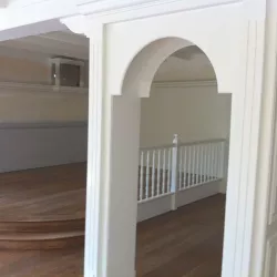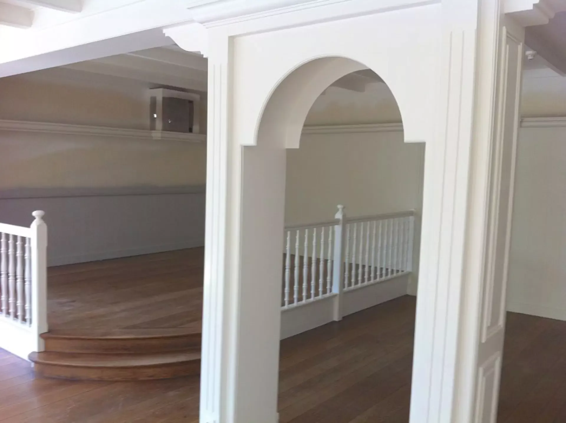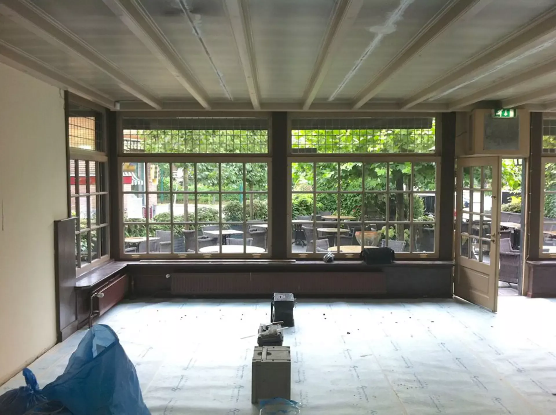 Eerst hebben we alle plafonds en wanden gereinigd om de nicotine-aanslag, afkomstig uit een tijd waarin dit nog mogelijk was, te verwijderen. Vervolgens hebben we de wanden, plafonds en het houtwerk behandeld met een isolerende primer. Het houtwerk is daarna gespoten met zijdeglansverf, de plafonds met matte muurverf, en de wanden zijn opnieuw gestuukt en voorzien van fris nieuw behang.